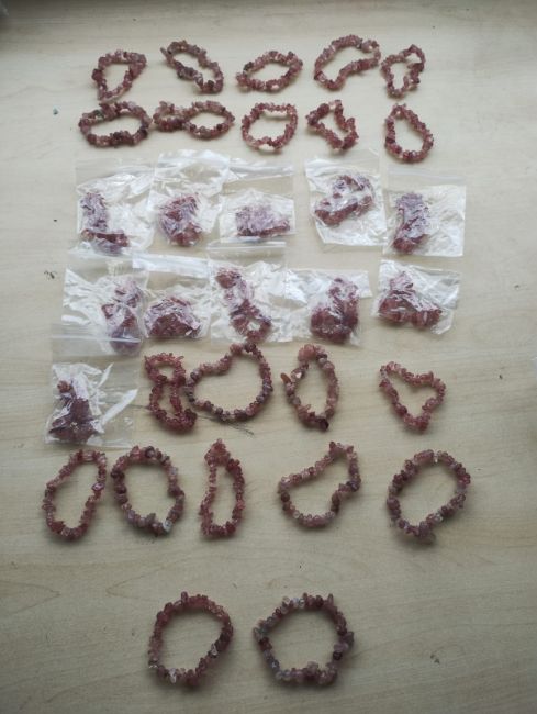 Strawberry Quartz Chrystal Chip Bracelets - New in original packaging - Joblot of 32