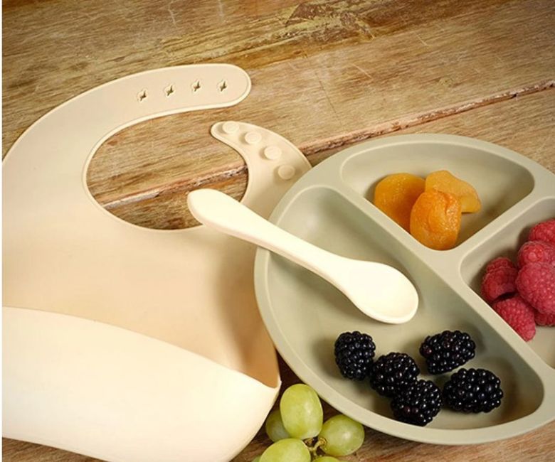 100 X Mealtime Plate, Spoon & Bib Set - Willow/Sand