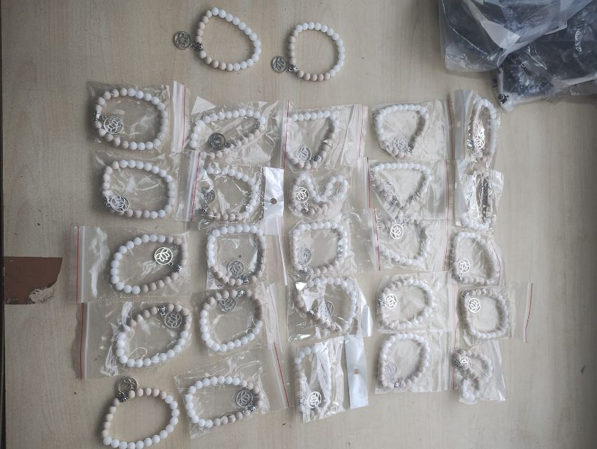 White Jade - Lotus Gemstone Beaded bracelets - brand new in original packaging - Joblot of 27