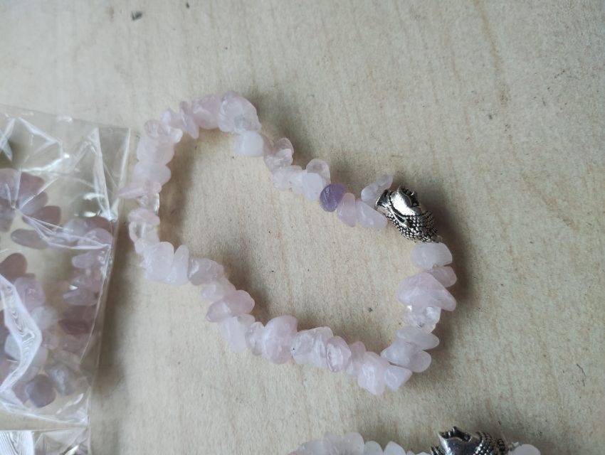 Rose Quartz Buddha Chip Stone Bracelets - New in original packaging - Joblot of 12