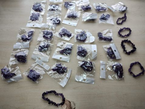 Amethyst Dark Small Crystal Chip Bracelet - joblot of 31- brand new