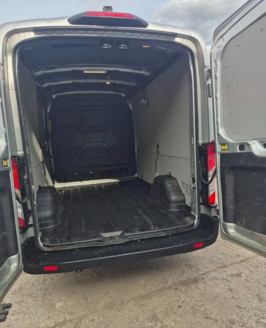 This 2019 FORD TRANSIT 310 TREND ECOBLUE L2H2 (5,531mm long × 2,490mm high) Panel Van, finished in Silver, features a 1996cc Diesel engine paired with a Manual transmission, displaying 156,133 miles. The vehicle is presented in the Mk9 New Shape Trend specification, featuring a Charcoal velour 3-seat interior. Equipped with front and rear parking sensors, heated electric folding door mirrors, front and rear fog lights, a heated front windscreen, and automatic headlights. The cargo area is plastic-lined with a removable factory loading mat and includes a factory steel bulkhead and rear plug sockets. Additional features include front and rear flashing beacons and a KRS system, allowing the key to be removed while the engine remains running, enhancing security by disabling the vehicle if an attempt is made to drive away. The seller confirms recent maintenance including a wet belt change and the fitment of a new turbo. Minor cosmetic marks are noted, consistent with commercial use, but do not detract from the overall presentation. The vehicle has 8 MOT tests on record and is currently MOT valid. No outstanding finance is recorded, and the vehicle history check confirms no write-off or theft markers.