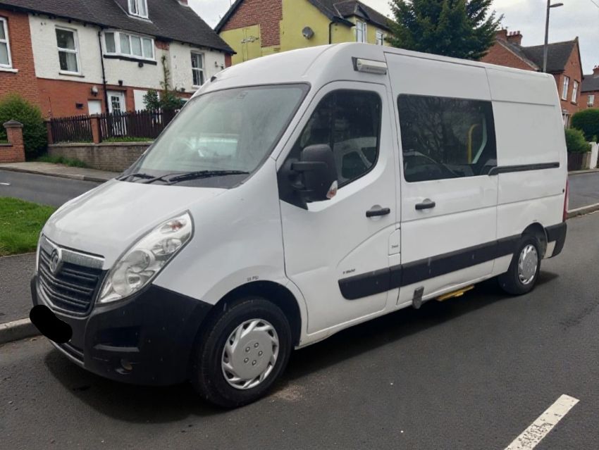 This 2018 VAUXHALL MOVANO L2H2 F3500 CDTI L2H2 (5,548mm long × 2,500mm high) is a Panel Van powered by a 2298cc Diesel engine with a Manual transmission, finished in White. It features a full professional welfare fit-out including a Wabasto diesel heater, microwave, hot water boiler, and a hot/cold sink. Additional amenities comprise 2 leisure batteries, USB charge points, a 12/240-volt inverter, and a reverse camera. The vehicle is EURO 6 ULEZ COMPLIANT, offering a 7-seater configuration, opening rear windows, and a dedicated rear storage area. Air conditioning, electric front windows, DAB radio, and a CD player are also present, alongside a rear step for convenience. The seller notes this vehicle is very well maintained, hence a faultless drive. The last recorded mileage from its latest MOT is 96,247 miles, with actual mileage potentially higher since that test. The vehicle has a valid MOT. There are 7 MOT tests on record. Finance is clear with no outstanding finance recorded, and no write-off history is present. This Movano is a single-owner example, reflecting a stable operational history. No outstanding finance is recorded, and there is no write-off history.