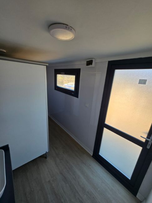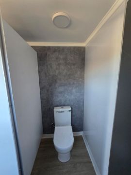 •Layout: Double cubicle WC, compact laminate sink bench, with double sink
