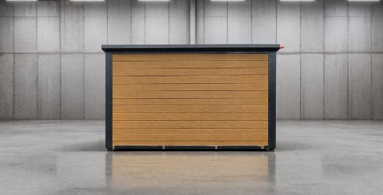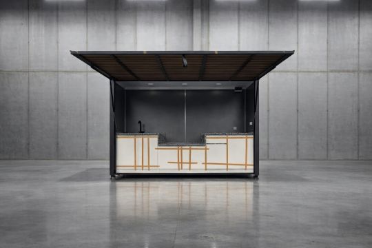 High-end outdoor bar / kitchen unit with a stay-open, soft-close canopy system, designed for easy serving and a premium finish. Ideal for gardens, events, hospitality use or commercial setups.
