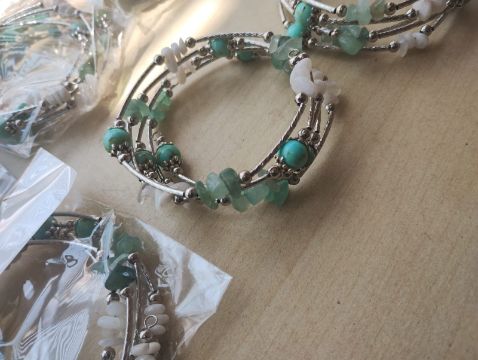 Adventurine+ White Agate gemstone Crystal wrap around bangles SS - new in original packaging - Joblot of 10