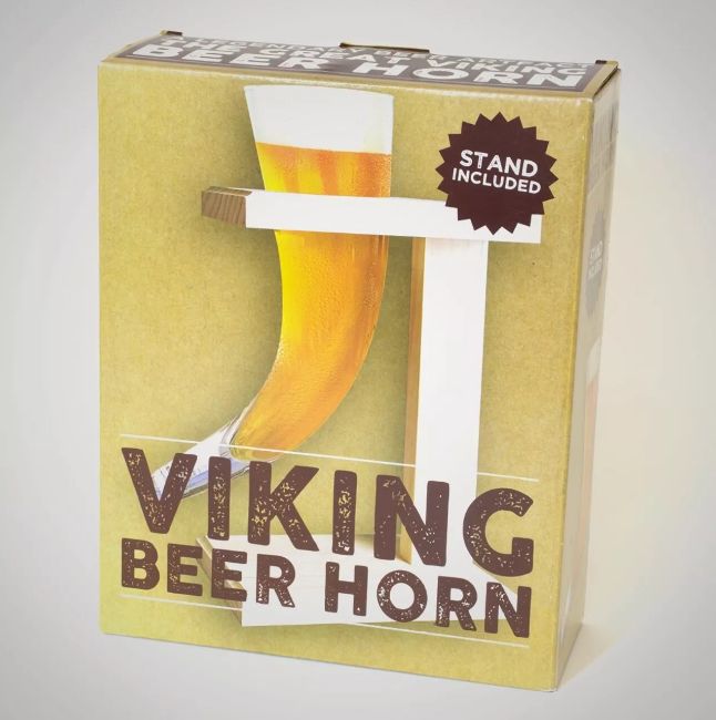 Viking Beer Horn Glass With Wooden Stand - Gift / Present / Novelty Beer Glass