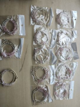 Rose Quartz - gemstone Crystal Chip - triple Bracelets - Stainless steel - new in original packaging - Joblot of 13
