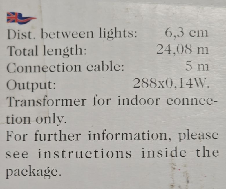 - 19.08m length of lights