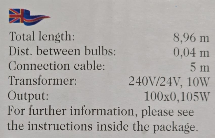 - 3.96m length of lights