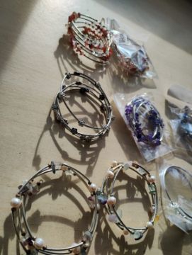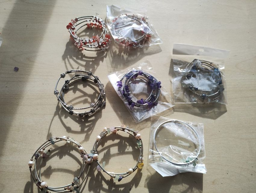 Mixed Crystal Chip and style  SS wrap around bangle Joblot of 8 - brand new