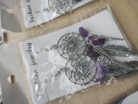 SS Amethyst dream catcher hanging earring sets joblot of 9 - Brand New