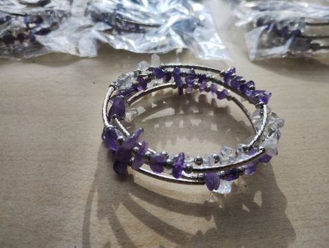 Amethyst Crystal Chip 4 strand wrap around bangle Joblot of 11 - brand new