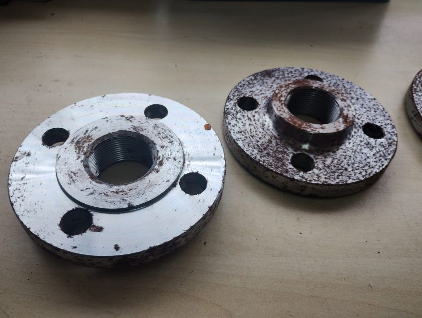 Joblot of 4 metal flanges - 4 hole Screwed center on 2 - mixed size - new just been in storage