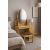 The mirror is on sliders and moves to either side. Has hidden storage behind the mirror