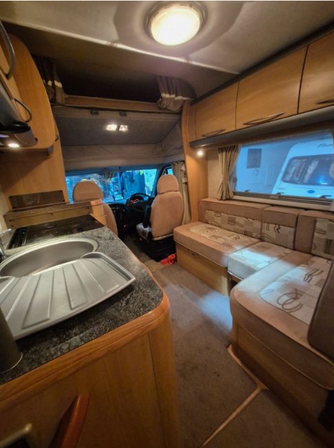 This 2005 FIAT DUCATO 18 JTD BACK TO BACK Motorhome, finished in White, features the 2.8 JTD engine. It presents with 46,000 miles, confirmed by seller, and has 21 MOT tests on record, with a valid MOT certificate. The vehicle accommodates 6 berths, featuring a rear U-shape lounge with rear seat belts, an overhead lift-up double bed, and a centre lounge that converts into a double bed. The rear U-shape lounge also transforms into a large king-size bed. Onboard amenities include a full-size cooker with oven, grill, and 4-ring hob, a full-size shower, a sink vanity unit, and a swivel cassette toilet, complemented by ample storage space. The motorhome benefits from hot and cold running water, gas and electric blown air heating, an electric deployable step, alloy wheels, a rear bike rack, a rear ladder, and roof storage. The seller notes this 2.8 JTD engine to be a superior option within the range and describes the camper as lovely and clean, originating from a pet and smoke-free family. Finance is clear with no outstanding finance recorded, and there is no write-off history on record.