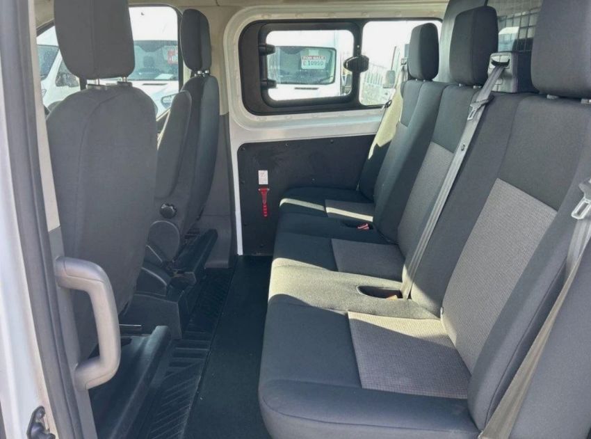This 2021 Ford Transit Custom 280 Leader Eblue L1H1 (4,973mm long × 2,000mm high) is presented in white, featuring a 1996cc diesel engine with manual transmission. The vehicle is a 5-seater crew van, compliant with Euro 6 emissions standards and ULEZ free zone regulations. Current mileage is recorded at 112,715 miles, equivalent to approximately 28,178 miles per year since registration. The vehicle has been with one owner from new, as noted by the seller. It is equipped with a full service history and has an MOT valid until August 2026. This Transit Custom showcases a cloth trim interior, a 6-speed gearbox, electric windows, a multi-function steering wheel, and a Bluetooth stereo system. Functionality is enhanced by a side door, side windows, a rear bulkhead, and a woodlined cargo area. Vehicle history checks confirm clear status with no outstanding finance recorded and no write-off history. The MOT history shows 2 tests on record, with all tests passing first time, indicating consistent roadworthiness since registration. The one-owner status and complete MOT pass record provide confidence in its historical care. No outstanding finance is recorded for this vehicle.