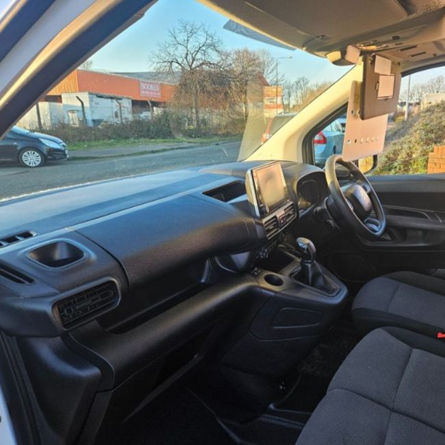 This 2019 CITROEN BERLINGO 650 EN-PRISE BLUEHDI L1H1 (4,403mm long × 1,840mm high) Panel Van, finished in White, features a 1499cc diesel engine paired with a 5-speed manual gearbox, having covered 74,000 miles. Registered in the UK on 30/10/2019, it presents as a single-owner vehicle from new. The Berlingo is equipped with an 8in colour touchscreen featuring Citroën Connect DAB radio, Bluetooth, USB and AUX connectivity, along with air conditioning and rear parking sensors. Further specification includes a 6-way adjustable driver’s seat with lumbar adjustment and under-seat storage, an EXTENSO modular folding passenger bench seat with load-through hatch and under-seat storage, and a full steel bulkhead. Functional attributes encompass a 12V socket in the dashboard, six floor-mounted load securing rings, electric front windows with one-touch operation, and electrically adjustable and folding door mirrors with temperature sensors. The vehicle also benefits from a Thatcham Category 1 alarm with tilt sensor, automatic electronic parking brake, cruise control with programmable speed limiter, and ESC with hill start assist, ABS, EBA and EBFD. Practicality is enhanced by a nearside sliding side loading door, unglazed asymmetric rear doors opening to 180 degrees, and a full-size steel spare wheel. The vehicle has 5 MOT tests on record, with the latest passed test contributing to its valid MOT until 2026-10-29. According to vehicle history checks, no outstanding finance is recorded, and there is no write-off history. The absence of dangerous defects in its MOT history and consistent mileage progression underscore its recorded use. Additional features include front fog lights, hard plastic floor protection in the cabin, an overhead storage shelf, and remote central locking with deadlocks. The vehicle is also fitted with a multi-function trip computer, visible VIN at base of windscreen, and a rolling code transponder immobiliser for security. The Berlingo is not an import and has not had its colour changed.