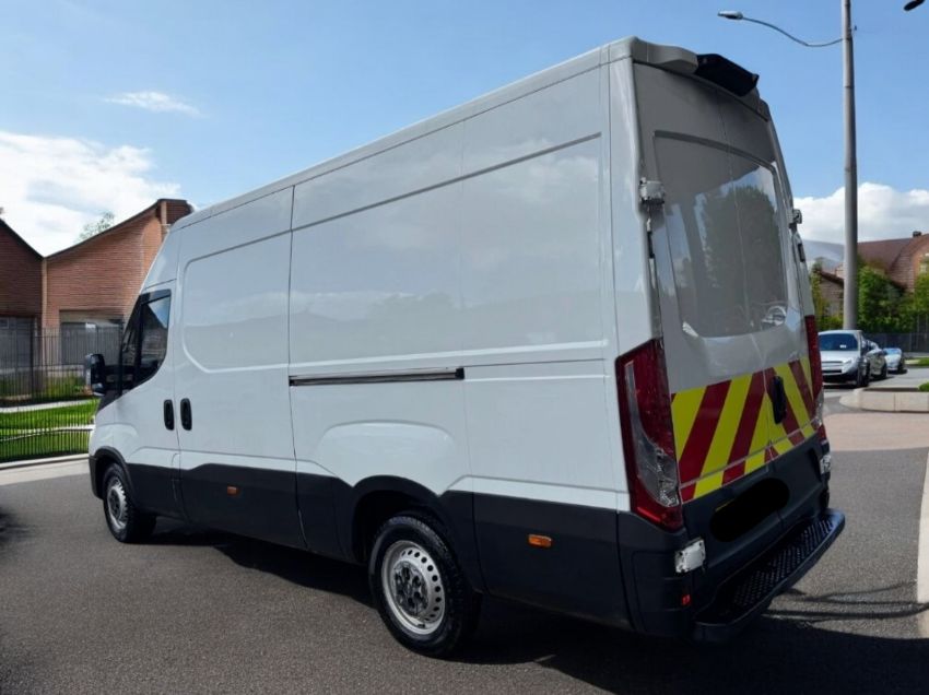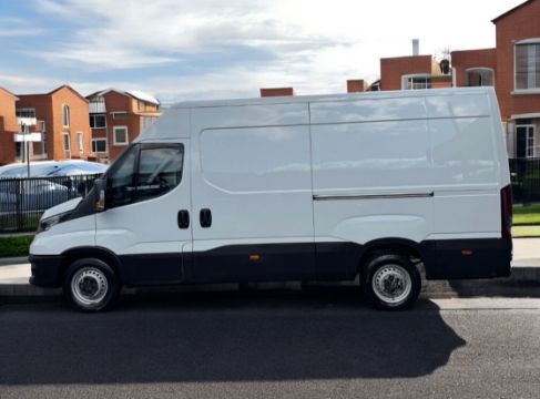 This 2022 IVECO DAILY 35S14B L2H3 (5,687mm long × 2,641mm high) Panel Van, finished in White, features a 2287cc Diesel engine paired with a Manual transmission. Showing 70,000 miles, this Euro 6 compliant vehicle is noted by the seller as a 2022 72 Reg model, direct from a company. It offers a comprehensive specification including power steering, remote central locking, electric mirrors, electric windows, and air conditioning. Further enhancing its utility are a reverse camera, side door access, a big screen entertainment system, Bluetooth connectivity, and cruise control. The vehicle is within its initial 3-year MOT exemption period, so no MOT test history is currently available. Vehicle history checks confirm no outstanding finance and no write-off history recorded. The seller notes this is a one-owner vehicle and the price is plus VAT.