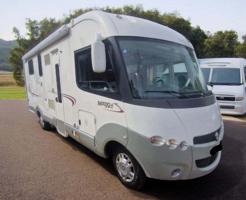This 2011 Fiat Ducato Rapido Le Randonneur 9090DF presents as a 4-berth left-hand drive motorhome with a 2.3L engine and 6-speed manual transmission, showing 48,847 miles. Vendor notes confirm a fixed island bed layout and optional features including air conditioning, reverse camera, satellite navigation, Bluetooth handsfree connectivity, and a night heater. Additional amenities include onboard water tanks, solar panels, and a rear storage compartment, complemented by Fiamma locks, a canopy, and a tow bar. This motorhome has had a single owner from new, with mileage verified as consistent across the seven years of tracked history, equivalent to approximately 740 miles per year since registration, suggesting light-duty use. The vehicle has 8 MOT tests on record, with the current MOT valid. Vehicle history checks confirm no outstanding finance, no accident write-offs, and no reports of theft. The low ownership and consistent mileage progression are noted positives based on historical records. Finance is clear, with no outstanding finance recorded.