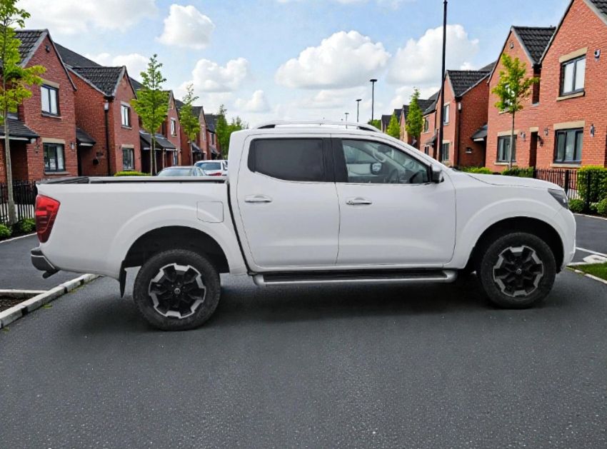 This 2019 NISSAN NAVARA TEKNA DCI 2.3 Manual Diesel Pick Up in White features a Euro 6 compliant 2299cc engine, with 98,000 miles recorded. The vehicle is equipped with a touchscreen stereo offering Bluetooth and AUX connectivity, satellite navigation, and a multi-function steering wheel. Comfort and convenience features include air conditioning, cruise control, electric windows, and electric wing mirrors. The interior benefits from leather seats and central locking, paired with a 6-speed manual gearbox. For parking and manoeuvring, reverse cameras are fitted, complemented by practical side steps and alloy wheels. This Navara has 2 owners on record and has 5 MOT tests on record, with the MOT valid until September 2026. According to vehicle history checks, there is no outstanding finance and no write-off history recorded. The seller notes the vehicle is in good condition all round and is ready to go.