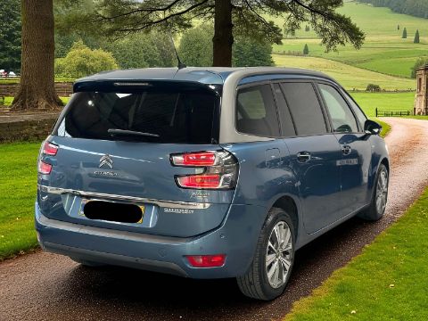 This 2014 Citroen C4 Grand Picasso Exclusive+ 1.6 Diesel Manual MPV, finished in Blue, presents at 151,539 miles. The vehicle has had two owners from new and is supplied with its full logbook and two keys. This seven-seater MPV is equipped with a panoramic sunroof, cruise control, and massage seats for enhanced comfort. Practical features include folding mirrors, blind spot assist, a reverse camera, and both front and rear parking sensors. The cabin benefits from a touchscreen display with navigation and Bluetooth connectivity, alongside a multifunction steering wheel. Convenience is further provided by an electric boot, remote central locking, alloy wheels, electric windows, and electric mirrors. The seller confirms a clutch kit and cambelt replacement have been carried out, alongside a service history. There are 10 MOT tests on record, with the current MOT valid until April 2026. This vehicle has clear finance and no write-off history recorded.