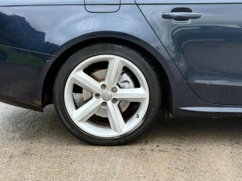 This 2008 AUDI A4 S LINE TDI Saloon in Blue features a 1968cc Diesel engine paired with a Manual transmission, displaying 126,356 miles. The vehicle is equipped with S Line Sport Suspension and an entertainment screen. It has been recently serviced on 19/02/2026 at 126,354 miles. The seller notes the vehicle is a good example inside and out, with good bodywork and a neat and tidy interior, and is ready to drive. It comes with alloy wheels, air conditioning, electric windows, electronic brakeforce distribution, electronic stability control, and Bluetooth connectivity. The vehicle has 4 recorded keepers, with MOT records indicating consistent mileage progression over 26 tests. The seller confirms a valid MOT until 07/03/2027. Vehicle history checks confirm no outstanding finance and no write-off recorded. Dimensions: 4,703mm long × 1,427mm high.